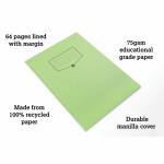 - Designed for classroom use, this Silvine exercise book features 64 quality 80gsm pages, which are feint ruled with a margin for neat note-taking. The book has green manilla covers, which can be used to colour coordinate lessons and learning. This pack contains ten A4 exercise books made from 100% recycled materials, produced in the United Kingdom.