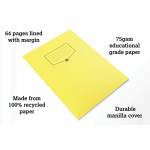 - Designed for classroom use, this Silvine exercise book features 64 quality 80gsm pages, which are feint ruled with a margin for neat note-taking. The book has yellow manilla covers, which can be used to colour coordinate lessons and learning. This pack contains ten A4 exercise books made from 100% recycled materials, produced in the United Kingdom.
