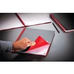 This professional Black n' Red A4 notebook contains 140 pages of quality, recycled 90gsm Optik paper, which is designed for minimum ink bleed through and is ruled for neat notes. The notebook is wirebound, allowing it to lie flat, and features durable polypropylene covers and an elasticated closure to help keep contents secure. This pack contains 5 A4 notebooks.