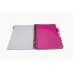The Europa Splash A4 Project book with a stylish polypropylene cover and five repositionable, polypropylene dividers is ideal for organising school and office topics. The wire binding allows the book to lie flat for ease of use and the pages are micro-perforated for easy removal. Featuring 200 lined pages of quality 80gsm paper which is feint ruled for neat note-taking, these pink project books are supplied in a pack of 3.