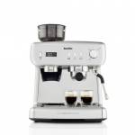 - Enjoy delicious coffee just like it tastes at your favourite café with the Breville Barista Max+ Espresso Machine with integrated bean grinder that's perfect for lattes, cappuccinos and more. Designed to remove the guesswork, the Barista Max+ grinder is intelligently programmed to provide feedback for the correct amount of coffee grounds for 1 or 2 shot dosage, while the LED screen displays your extraction time, allowing you to time your optimum extraction for a perfect espresso. Inspired by commercial espresso machines, the Barista Max+ offers all the features and accessories needed to enjoy café-style coffee at home, including a powerful steam wand that creates velvety microfoam milk for delicious lattes, flat whites and cappuccinos.