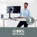 Sitting or standing with bad posture all day using a computer is bad for your health. Leaning forwards or tilting your head up or down not only causes back and neck strain but is also bad for your eyes. The Fellowes Seasa dual monitor mount will improve your ergonomic posture and reduce back neck and eye strain. Dual screen working means you can view more screen content and can use multiple programs simultaneously. With ever shrinking office spaces, using a dual monitor stand means you can free up valuable work space to become more organised and productive. With effortless adjustment you can collaborate and share information with colleagues easily, making them perfect for hot desks or shared desks. The Fellowes double monitor stand is ideal for any workspace, with its stylish, convenient design. This fully independent adjustable dual monitor arm by Fellowes can pan 120°, tilt +/-45° and can rotate 360° for optimum viewing control. Intuitive cable management system and low profile base helps you minimise clutter with the Fellowes Seasa dual monitor arm. It's free standing ability enables dual monitors to be used in spaces that do not allow a clamp or grommet mount - each arm can hold up to 8KG monitors with a maximum screen size of 27in/68.58cm and meets VESA monitor bracket standards.