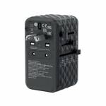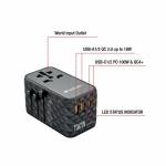 - This Verbatim World-to-World adapter is a universal travel adapter with GaN III technology. Plug formats: EU, UK, USA/Japan and Australia; suitable for more than 180 countries. Can charge up to 5 devices simultaneously. 2 x USB-C Power Delivery 3.0 (PPS support) and Quick Charge 4+ output: up to 100W each and 2 x USB-A Quick Charge 3.0 output: up to 18W. Casing is made from flame resistant polycarbonate material. Safety shutter for child protection. Features a status LED indicator. Fuse: 10A (BS1362 compliant). Includes a travel pouch. Accepts plug types: A, B, C, E, F, G, I, J, L, N. For indoor use only. Includes a travel pouch.
