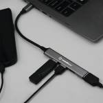 This product allows you to connect up to 4 USB devices to one single USB C port, enabling you to use them simultaneously. This is helpful if you need to connect things such as keyboards, mouse or a printer to your PC.