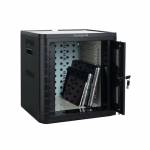 | Lockable cabinet safeguards devices against theft and damage. |