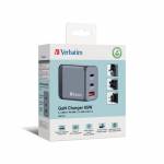 - Verbatim's 65W GaN Wall Charger combines two USB-C PD 65W ports and one USB-A QC 3.0 port in a sleek, palm sized design. Ideal for the office, home or travelling to power your laptop, tablet, smartphone, gaming devices, and more. With its foldable US prongs and replaceable EU and UK plugs, it's the ultimate travel companion. Galliam Nitride (GaN) technology delivers high-powered, fast, efficient charging, and generates less heat. GaN chargers are smaller and lighter than traditional silicon-based chargers, making them ultra-portable and ideal for travel.