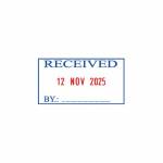 This environmentally friendly, self inking COLOP S260/L1 Green Line stamp is made from a minimum of 80% recycled materials. The stamp combines a 4mm date with the word RECEIVED for organised records and filing. The stamp has an impression size of 45 x 24mm and prints the text in blue, with the date in red.