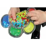 Colourful flower shaped colour matching game. Start with all the beads in the centre and and try matching each bead with the same colour petal, pushing them through a small gap into the correct colour. Helps develop hand eye coordination, familiarity with colours and great for education with colour matching, sorting, counting, addition and subtraction.