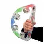 - Make some noise with this Flashing LED Light Up Tambourine. This flashing tambourine provides lots of stimuli for the senses with touch, lights and music. This light up tambourine has a simple press button On/Off switch on the handle which activates the bright multi-coloured LED lights. There are multiple flashing mode settings, meaning no child can resist giving this a shake or rattle to make great sounds. The tambourine requires 3 x AA batteries.