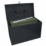 - The classic British made Cathedral Products foolscap steel home file box provides a durable solution for storing documents. Constructed from hard-wearing steel, it is designed to hold foolscap sized suspension files and includes five suspension files with crystal-clear clip-on tabs to get started. The file box features a secure cam lock for added protection and comes with two keys for security.