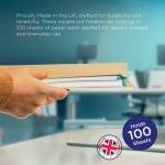 These environmentally friendly Guildhall square cut folders are made from 100% recycled, mediumweight 250gsm manilla. Suitable for filing both A4 and foolscap documents, each folder can hold up to 100 sheets of 80gsm paper. This pack contains 100 buff folders.