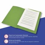 These environmentally friendly Guildhall square cut folders are made from 100% recycled, mediumweight 250gsm manilla. Suitable for filing both A4 and foolscap documents, each folder can hold up to 100 sheets of 80gsm paper. This pack contains 100 green folders.