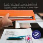 These environmentally friendly Guildhall square cut folders are made from 100% recycled, mediumweight 250gsm manilla. Suitable for filing both A4 and foolscap documents, each folder can hold up to 100 sheets of 80gsm paper. This pack contains 100 orange folders.
