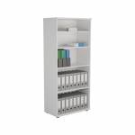 - This Jemini Bookcase provides a convenient storage solution for organised office filing. Complete with four shelves, this bookcase is suitable for filing and storing lever arch and box files. The bookcase measures W800 x D450 x H1800mm and comes in a white finish to complement the Jemini furniture range.