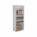 - This Jemini Bookcase provides a convenient storage solution for organised office filing. Complete with four shelves, this bookcase is suitable for filing and storing lever arch and box files. The bookcase measures W800 x D450 x H2000mm and comes in a white finish to complement the Jemini furniture range.