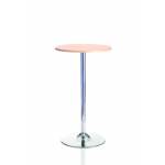 This stylish and elegant bistro table has a modern, contemporary design that enhances any room it sits in. A smooth, round table top allows multiple people to sit around it while a long, chrome stem runs all the way down to a circular base. Made from durable material, it is not only sleek but durable as well, making it perfect for heavy, frequent use. The beech veneer top wipes clean easily for quick and efficient cleaning.