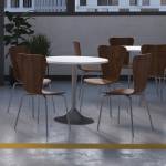 This stylish and elegant bistro table has a modern, contemporary design and a smooth, round table top for multiple users. A long, chrome stem runs all the way down to a circular base for a sleek and durable finish. The glossy white top has a diameter of 800mm and wipes clean easily for quick and efficient cleaning.