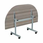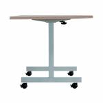 This economical mobile flip-top table has a hard-wearing MFC top and silver legs with black castors. The table nests for easy storage when not in use.