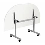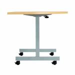 This economical mobile flip-top table has a hard-wearing MFC top and silver legs with black castors. The table nests for easy storage when not in use.