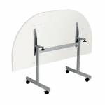 This economical mobile flip-top table has a hard-wearing MFC top and silver legs with black castors. The table nests for easy storage when not in use.