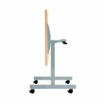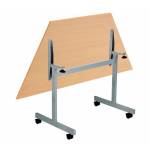 This economical mobile flip-top table has a hard-wearing MFC trapezoidal top and silver legs with black castors.