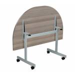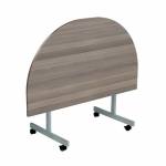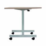 This economical mobile flip-top table has a hard-wearing MFC top and silver legs with black castors. The table nests for easy storage when not in use.