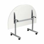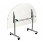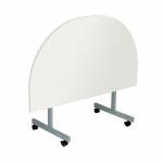 This economical mobile flip-top table has a hard-wearing MFC top and silver legs with black castors. The table nests for easy storage when not in use.