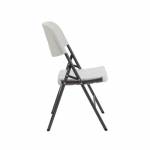 - This lightweight Jemini chair features folding legs for easy storage when not in use. The high density white plastic construction is dent, scratch and moisture resistant, making this chair ideal for schools and catering environments. Also suitable for outdoor use, this lightweight chair has a recommended usage time of 5 hours.