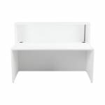 With clean and elegant lines, this Jemini Reception Unit is ideal for use in a variety of reception areas. The modular design features a panel end construction incorporating a fixed riser unit. The unit has a sturdy 25mm thick desktop. This reception unit measures 1600x800x740mm and is finished in White.