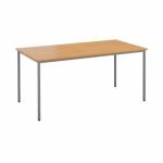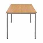 - This multipurpose rectangular table, supplied in a flatpack construction is simple to build and is ideal for a variety of uses. Featuring 10mm height adjustable feet with metal to metal fixings, the table comes with a silver powder coated frame. Finished in Beech, measuring 1200x800x730mm in size.