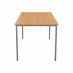 - This multipurpose rectangular table, supplied in a flatpack construction is simple to build and is ideal for a variety of uses. Featuring 10mm height adjustable feet with metal to metal fixings, the table comes with a silver powder coated frame. Finished in Beech, measuring 1800x800x730mm.