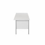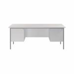 This 4 Leg desk from the Serrion range features a simple and contemporary finish that is ideal for use at home or in the office. The rectangular design allows for multiple desk configurations to set up your office in a way that works for you. This desk features an 18mm thick desktop with sturdy metal legs, a modesty panel and a two drawer and three drawer pedestal included as standard. Cable ports are not included. This desk measures 1800x750x730mm in size.