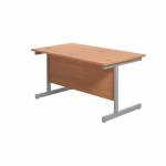 Jemini Single Rectangular Desk 1400x800x730mm Beech/Silver KF801126