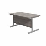 Jemini Single Rectangular Desk 1400x800x730mm Grey Oak/Silver KF801139