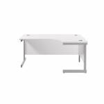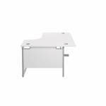 Suitable for use in a variety of office environments, this Jemini Radial Desk features a strong cantilever frame for support and stability. The radial design offers easy working access to your computer, as well as ample additional desktop space. It features a 25mm thick desktop with dual cable management ports to keep workspaces tidy and free from wires. The desk includes a modesty panel as standard and is suitable for use with Jemini Under Desk Pedestals.