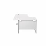 Suitable for use in a variety of office environments, this Jemini Radial Desk features a strong cantilever frame for support and stability. The radial design offers easy working access to your computer, as well as ample additional desktop space. It features a 25mm thick desktop with dual cable management ports to keep workspaces tidy and free from wires. The desk includes a modesty panel as standard and is suitable for use with Jemini Under Desk Pedestals.