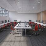 This Jemini Cantilever Desk features double upright legs for improved stability, with height adjustable feet up to 10mm. The 25mm thick MFC desktop features 2mm edge banding and 80mm dual cable management ports. Ideal for a variety of office environments.