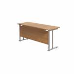 This Jemini Cantilever Desk features double upright legs for improved stability, with height adjustable feet up to 10mm. The 25mm thick MFC desktop features 2mm edge banding and 80mm dual cable management ports. Ideal for a variety of office environments.