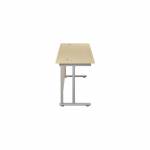 This Jemini Cantilever Desk features double upright legs for improved stability, with height adjustable feet up to 10mm. The 25mm thick MFC desktop features 2mm edge banding and 80mm dual cable management ports. Ideal for a variety of office environments.