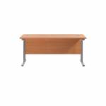 This Jemini Cantilever Desk features double upright legs for improved stability, with height adjustable feet up to 10mm. The 25mm thick MFC desktop features 2mm edge banding and 80mm dual cable management ports. Ideal for a variety of office environments.