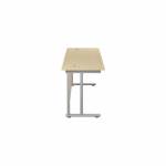 This Jemini Cantilever Desk features double upright legs for improved stability, with height adjustable feet up to 10mm. The 25mm thick MFC desktop features 2mm edge banding and 80mm dual cable management ports. Ideal for a variety of office environments.