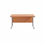 This Jemini Cantilever Desk features double upright legs for improved stability, with height adjustable feet up to 10mm. The 25mm thick MFC desktop features 2mm edge banding and 80mm dual cable management ports. Ideal for a variety of office environments.