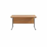 This Jemini Cantilever Desk features double upright legs for improved stability, with height adjustable feet up to 10mm. The 25mm thick MFC desktop features 2mm edge banding and 80mm dual cable management ports. Ideal for a variety of office environments.