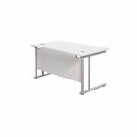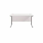 This Jemini Cantilever Desk features double upright legs for improved stability, with height adjustable feet up to 10mm. The 25mm thick MFC desktop features 2mm edge banding and 80mm dual cable management ports. Ideal for a variety of office environments.