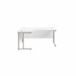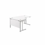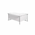 Suitable for use in a variety of office environments. This Jemini Cantilever Desk features double upright legs for improved stability, with height adjustable feet up to 10mm. The radial design offers easy working access to your computer, as well as ample additional desktop space. The 25mm thick MFC desktop features 2mm edge banding and 80mm dual cable management ports. The desk includes a modesty panel as standard and is suitable for use with Jemini Fixed Pedestals on the 800mm end.