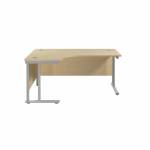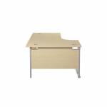 Suitable for use in a variety of office environments. This Jemini Cantilever Desk features double upright legs for improved stability, with height adjustable feet up to 10mm. The radial design offers easy working access to your computer, as well as ample additional desktop space. The 25mm thick MFC desktop features 2mm edge banding and 80mm dual cable management ports. The desk includes a modesty panel as standard and is suitable for use with Jemini Fixed Pedestals on the 800mm end.