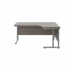 Suitable for use in a variety of office environments. This Jemini Cantilever Desk features double upright legs for improved stability, with height adjustable feet up to 10mm. The radial design offers easy working access to your computer, as well as ample additional desktop space. The 25mm thick MFC desktop features 2mm edge banding and 80mm dual cable management ports. The desk includes a modesty panel as standard and is suitable for use with Jemini Fixed Pedestals on the 800mm end.