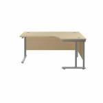 Suitable for use in a variety of office environments. This Jemini Cantilever Desk features double upright legs for improved stability, with height adjustable feet up to 10mm. The radial design offers easy working access to your computer, as well as ample additional desktop space. The 25mm thick MFC desktop features 2mm edge banding and 80mm dual cable management ports. The desk includes a modesty panel as standard and is suitable for use with Jemini Fixed Pedestals on the 800mm end.