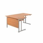 Suitable for use in a variety of office environments. This Jemini Cantilever Desk features double upright legs for improved stability, with height adjustable feet up to 10mm. The radial design offers easy working access to your computer, as well as ample additional desktop space. The 25mm thick MFC desktop features 2mm edge banding and 80mm dual cable management ports. The desk includes a modesty panel as standard and is suitable for use with Jemini Fixed Pedestals on the 800mm end.