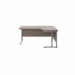 Suitable for use in a variety of office environments. This Jemini Cantilever Desk features double upright legs for improved stability, with height adjustable feet up to 10mm. The radial design offers easy working access to your computer, as well as ample additional desktop space. The 25mm thick MFC desktop features 2mm edge banding and 80mm dual cable management ports. The desk includes a modesty panel as standard and is suitable for use with Jemini Fixed Pedestals on the 800mm end.